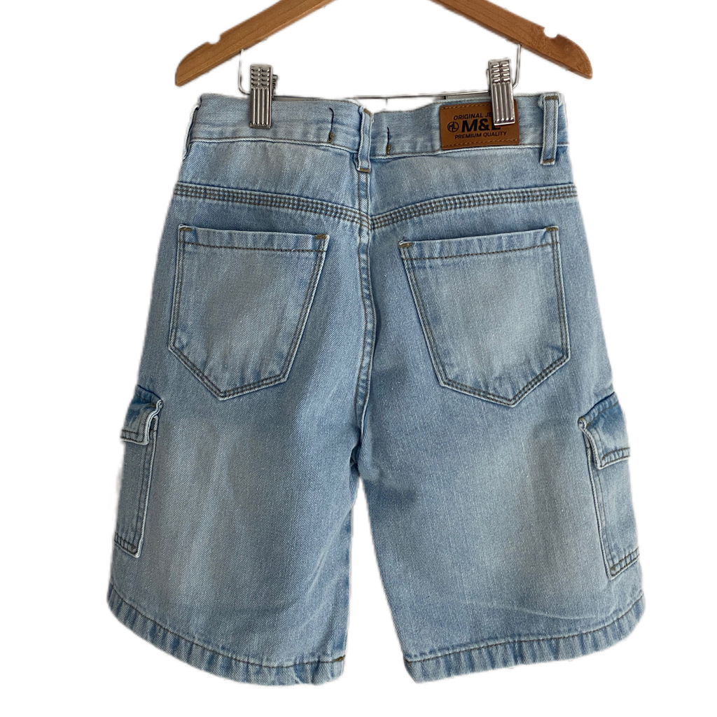 Bermuda de jean celeste claro gastado con bolsillos laterales tipo cargo. Super canchera!